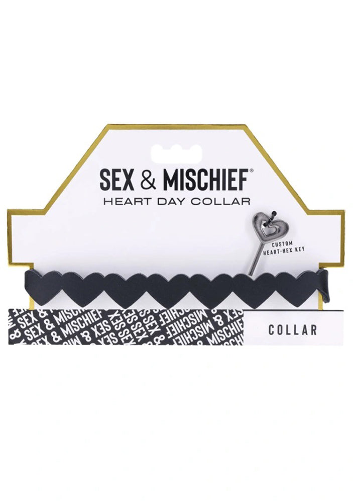 Turn up the heat with the Heart Day Collar and add a touch of mystery and seduction to your everyday look. Crafted from sumptuous faux leather, this choker style necklace is designed with connected hearts and can be locked in place for ultimate control and submission. Whether you're looking to spice things up in the bedroom or simply add a hint of naughtiness to your daily style, the Heart Day Collar is sure to capture attention and leave them wanting more. So go ahead and indulge in a little flirtatious fun - you know you want to!